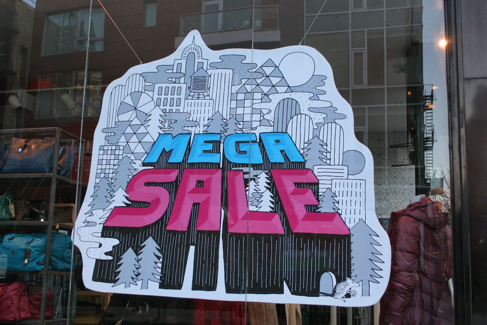 A sign in the Kenneth Cole store window says "The average woman falls in love 7 times a year. Only 6 are with shoes."