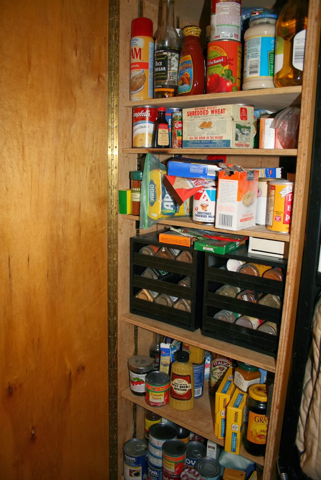 pantry is now emptier with all the items pulled to the front of the shelves.